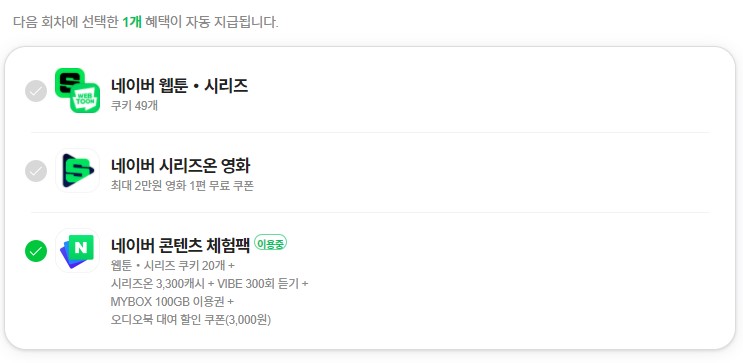 멤버십에 가입하면 디지털 콘텐츠도 제공한다. 네이버에서 웹툰이나 드라마 또는 영화 등을 주기적으로 본다면 쓰는 돈도 절약할 수 있다. 네이버랑 CJ랑 전략적 제휴를 맺고 난 이후 다음 달인 2월부터는 심지어 티빙도 볼 수 있다.