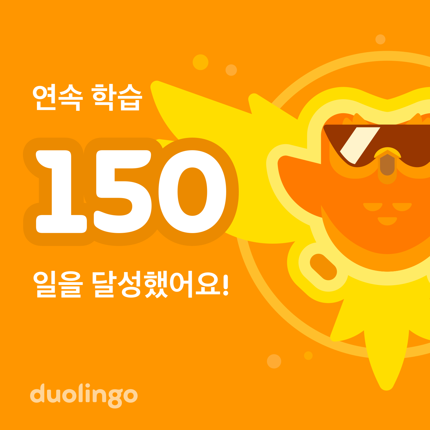 듀오링고가 어느덧 150일을 넘었네요. 1월초에 시작했으니 시간도 그만큼 흘렀다는 거겠죠? 다음 200일 차를 향해 또 열심히 달려보겠습니다 :)