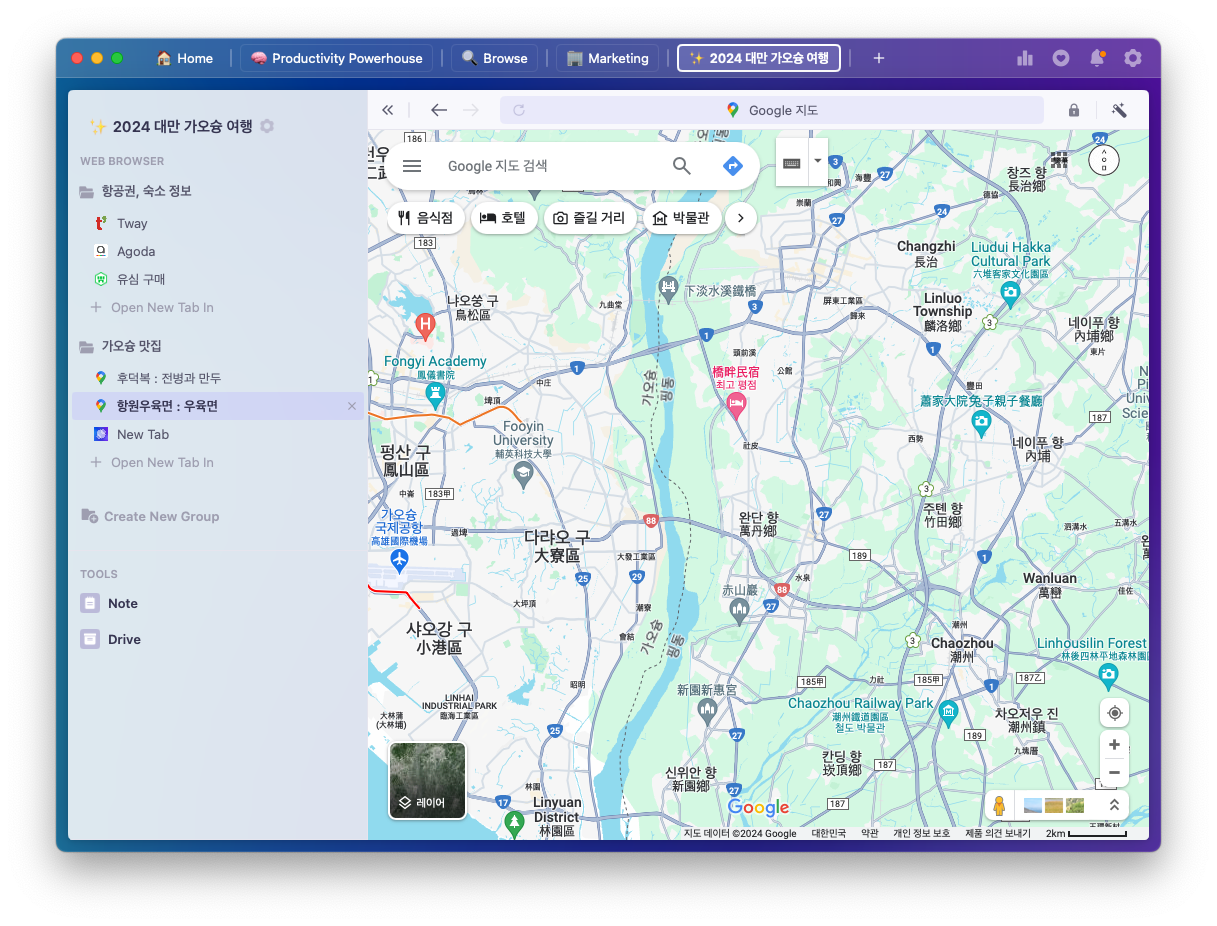 이번에는 여행 준비하면서 미러 브라우저를 써보고 있습니다. Group 기능에 특화된 브라우저라고 할까요. 정보 타입에 맞춰서 집중해서 볼 수 있어서 좋은 것 같습니다. 예전에 한 번 썼다가 안 쓰다, 다시 생각이 나서 쓰고 있는데 그 사이 많이 좋아졌네요.
