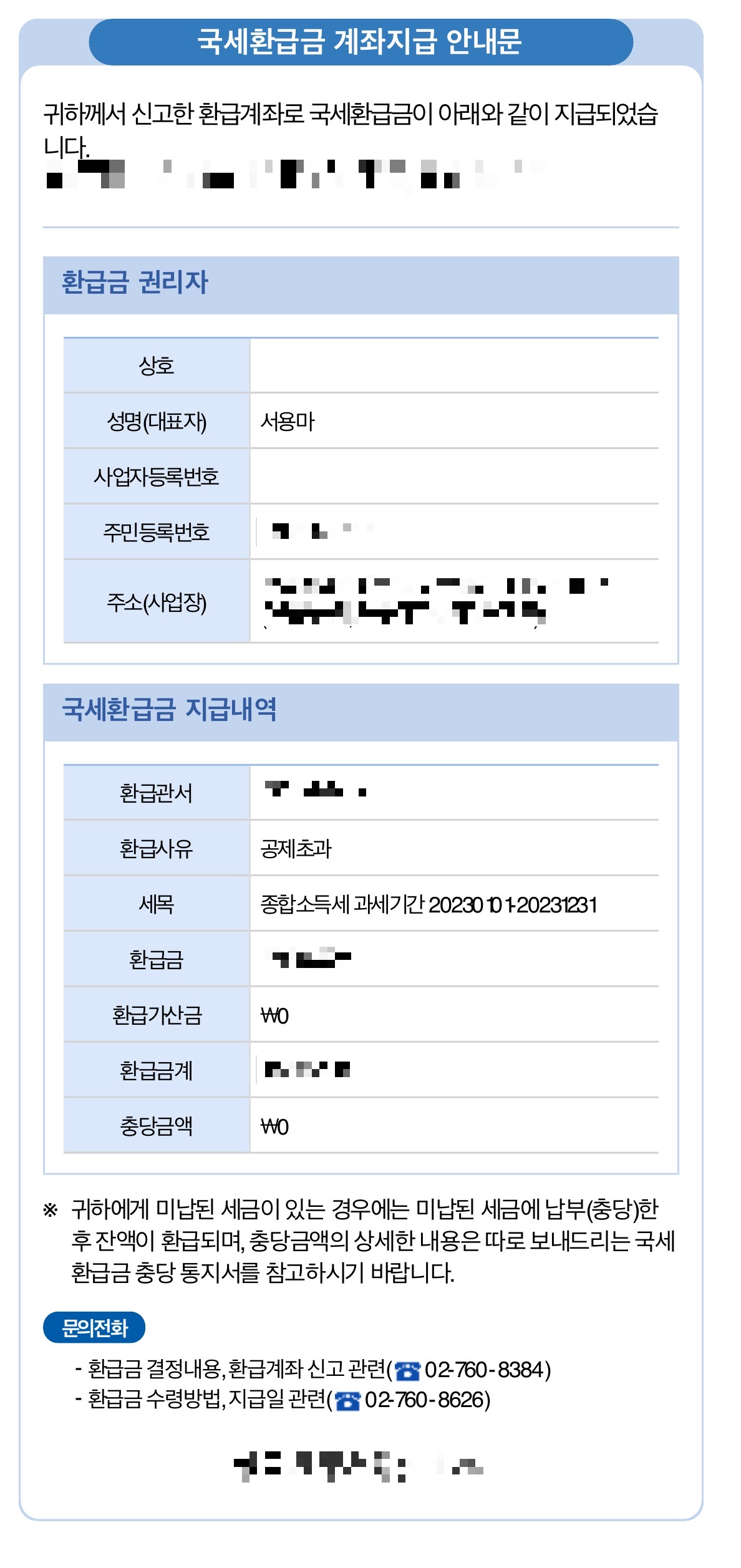 5월에 신고했던 종합소득세에서 국세환급금이 입금되었습니다. 6월말이나 7월 초에 입금될 줄 알았는데 생각보다 빨리 들어왔네요. 이제 10% 정도에 해당하는 지방세만 환급받으면 됩니다. 올해는 사실 뱉을 줄 알았는데 받아서 좋았습니다. (?) 5월에 종합소득세 계산해 보고 바로 DJI 포켓 3도 질렀답니다. 그거 카드값 갚아야겠어요. ㅎㅎ
