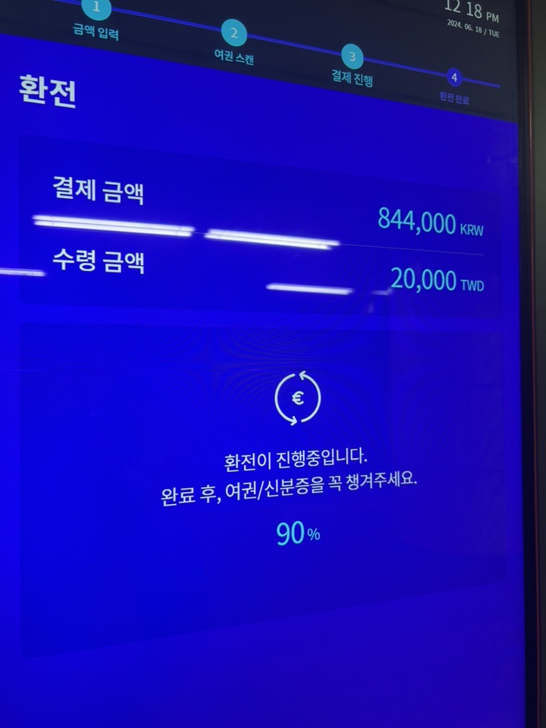 대만 달러는 환율우대를 높게 해주는 은행이 없어서 트래블로그만 들고 갈까 고민하다가, 검색해보니 100% 환율우대해주는 와우익스체인지라는 서비스가 있더라고요. 그래서 가까운 을지로3가로 달려 가서 바로 환전해봤습니다. 신분증 인식하고 계좌이체하니까 바로 환전되서 나오네요. 국민은행 환전 금액이랑 비교해보니 꽤 많은 차이가 납니다. ㅎㅎ 앞으로 환전할 일 일있으면 여기서 해봐야겠네요!