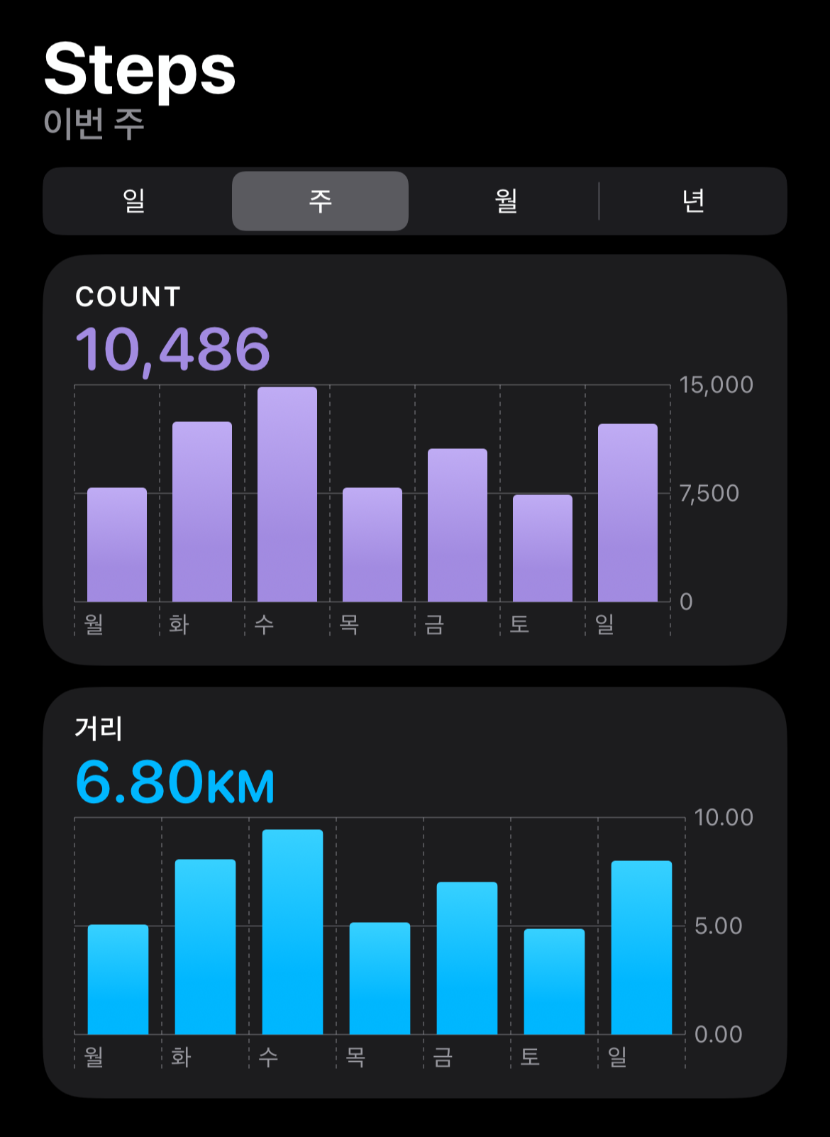 10,486보를 걸었네요! 매일 만 보를 걸은 건 아니지만 더운 여름에 이 정도면 선방. ㅎㅎ