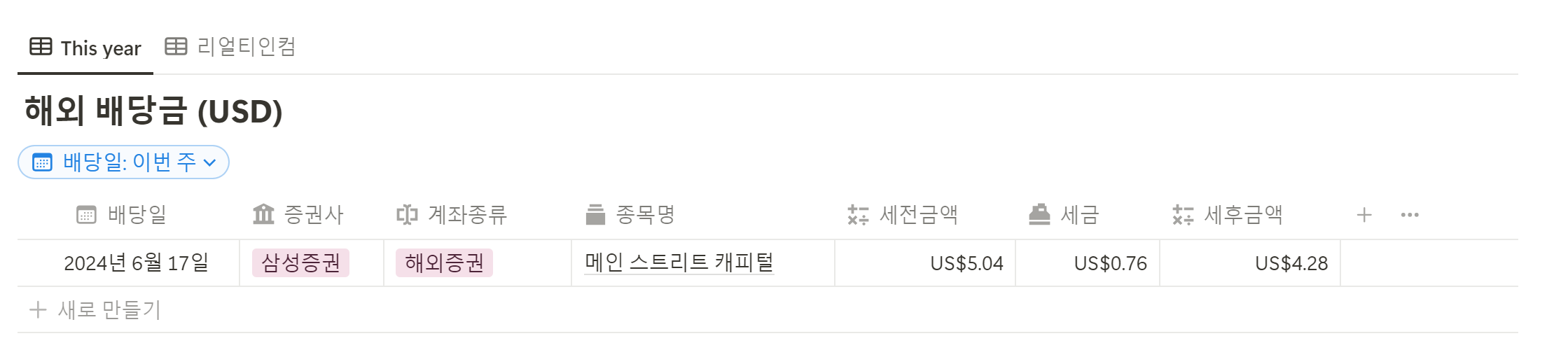 메인 스트리트 캐피털 월배당이 나왔습니다. 얘는 몇 주 없어서 월 5달러 정도 소소하게 나옵니다 :)