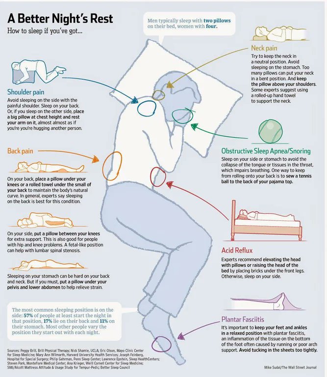 전문가들은 베개를 사용하여 머리를 높이거나 침대 앞다리에 블록을 놓아 상체를 올리는 것을 추천합니다. 반듯이 누워 주무세요.
