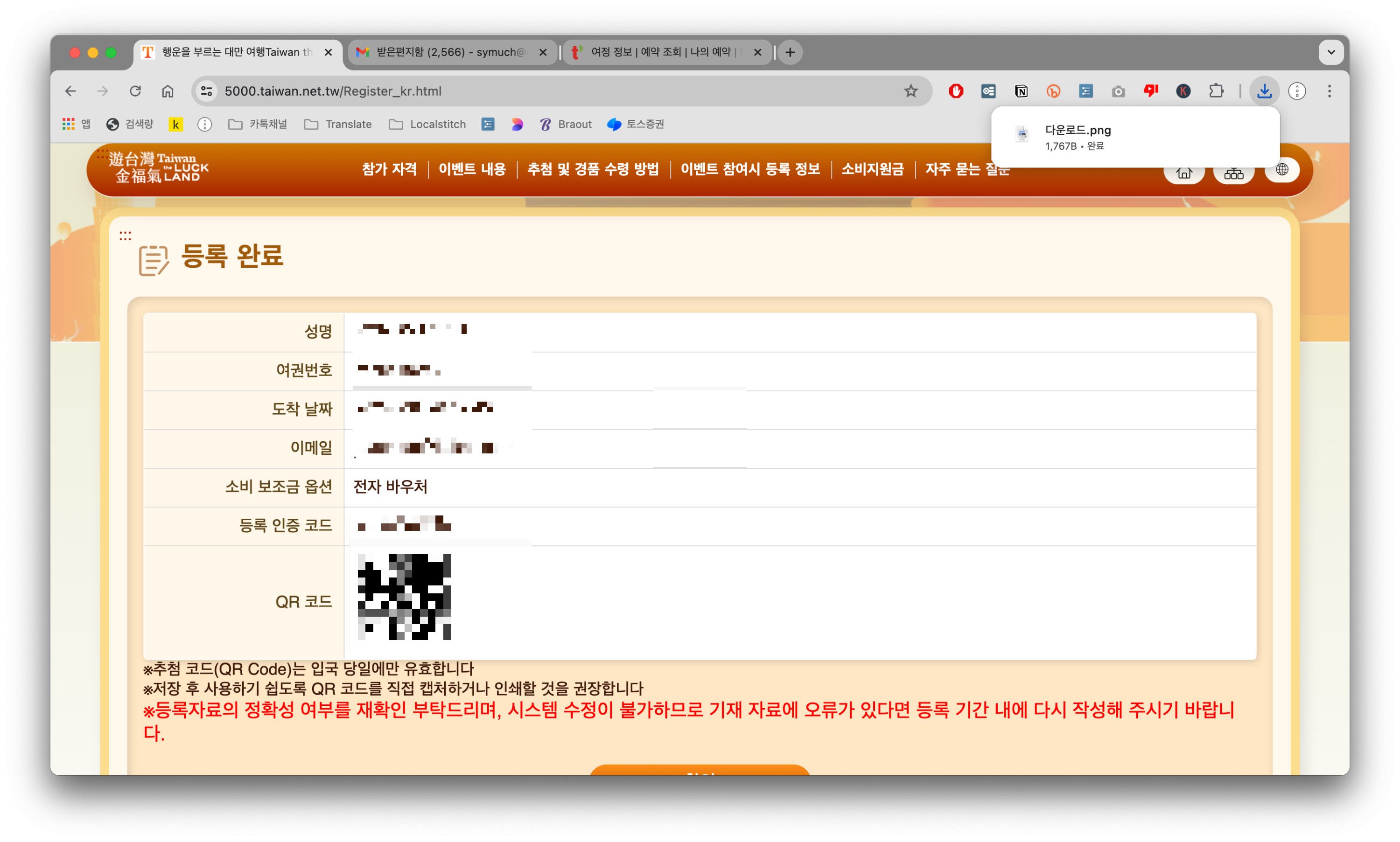 2025년 6월 30일까지 대만 소비지원금을 지원해주는 게 있어서 신청했습니다. 이제 금요일이면 떠나네요. 휴...ㅎㅎㅎ