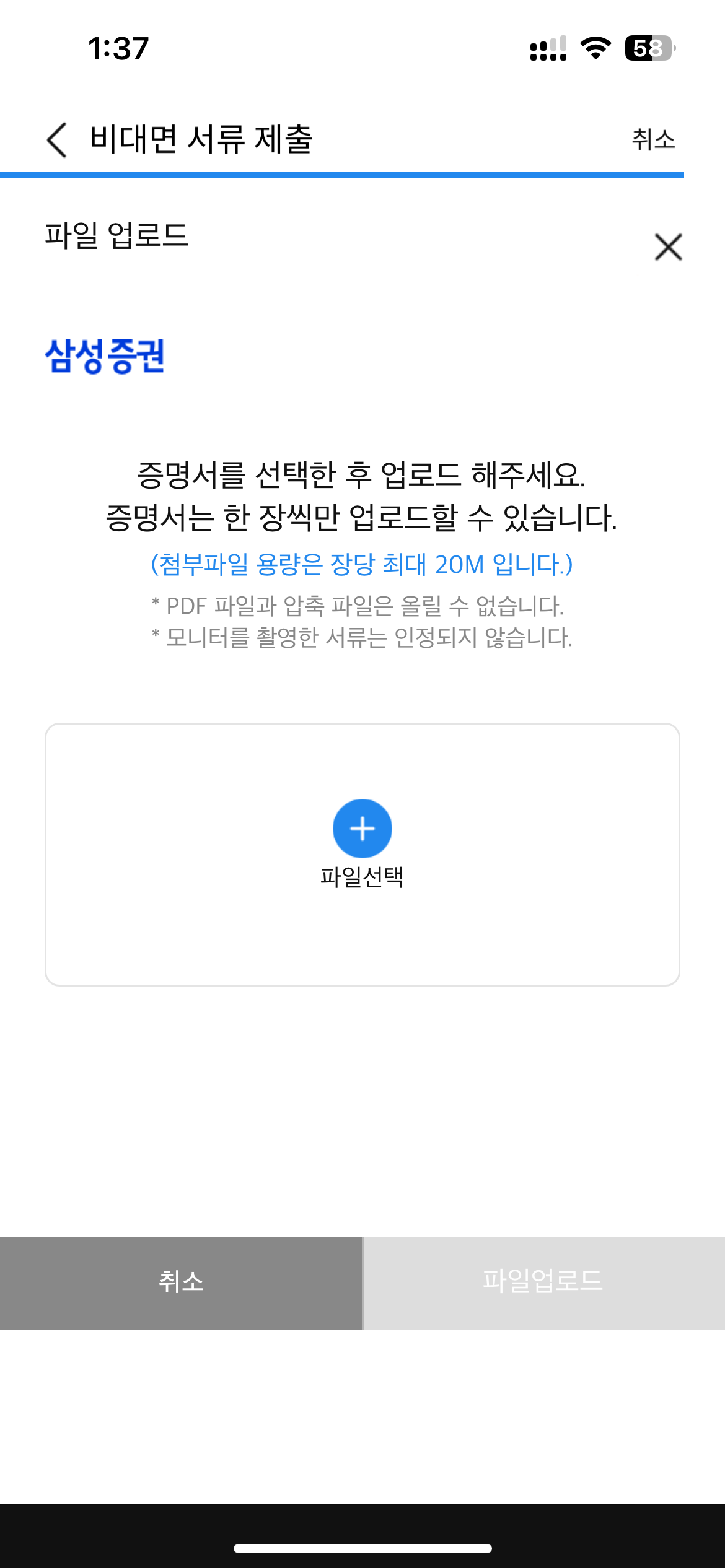 - 서류는 PDF 제출로는 안되고, 직접 출력해서 삼성증권 앱에서 제출할 수 있음.