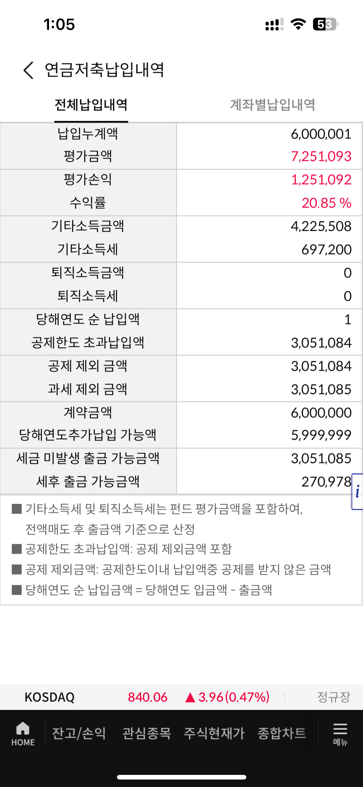 5. 상담원에게 작년에 납입한 연금 과세 제외 금액 인출하려고 비대면 서류제출했다고 말하면 유관부서에서 확인 후 다시 전화준다고 한다. 02-6230-6530이라는 번호로 전화가 왔었다. 이때 계좌번호, 비밀번호 확인 받고 정상적으로 처리됐다. (엄청나게 후련하다..)