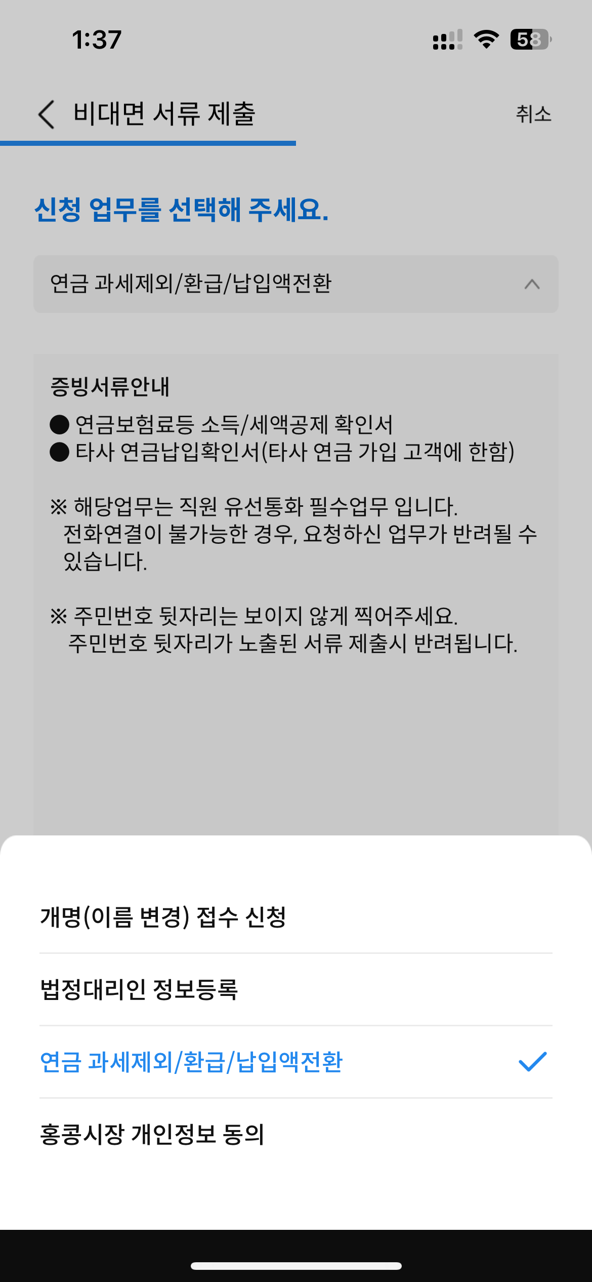- 제출한 다음에 영업점에 전화 걸어서 빨리 처리해달라고 하면 유관부서에서 연락준다고 한다.