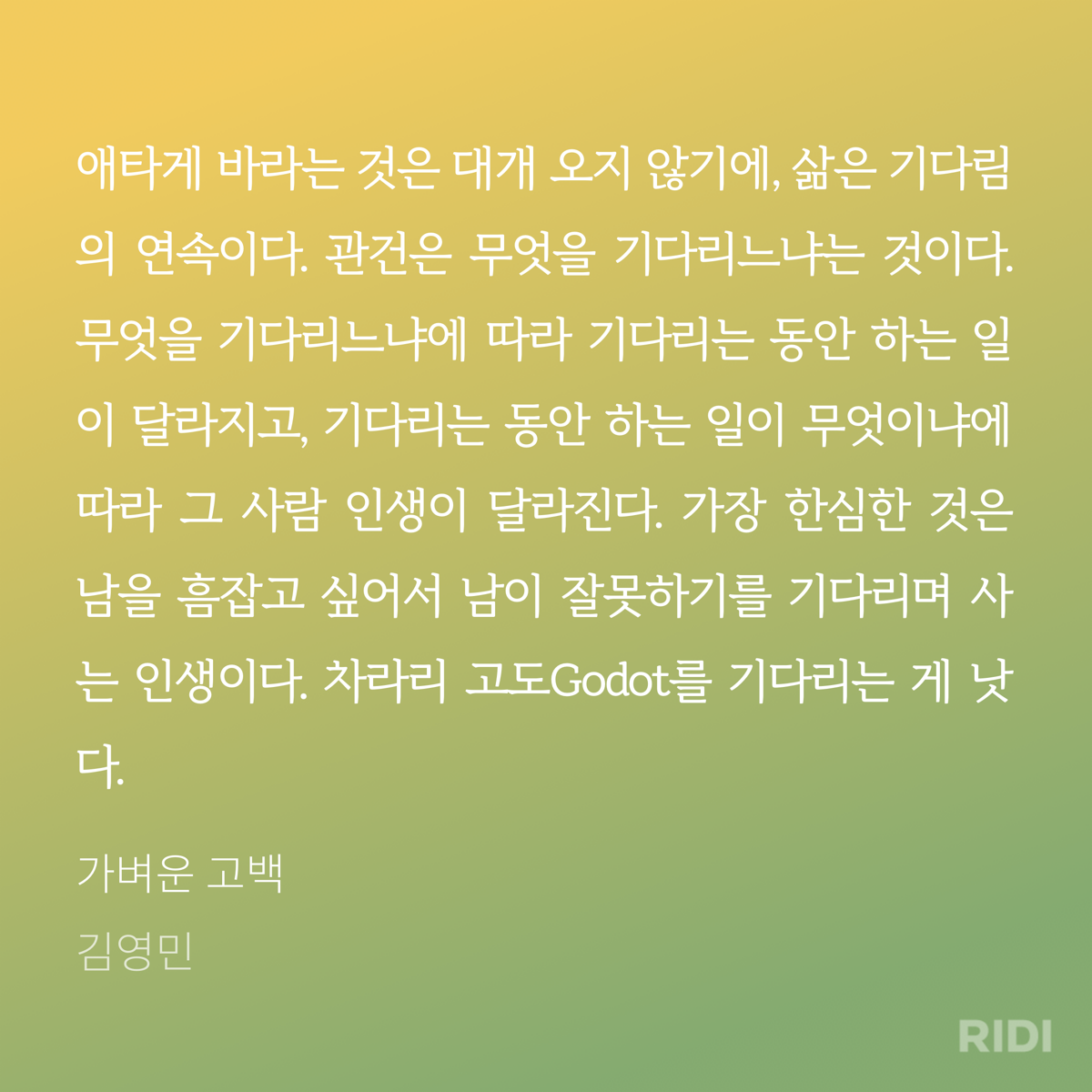 김영민 교수가 쓴 책 <가벼운 고백>을 읽었습니다. 책 제목처럼 책도 정말 가볍긴 합니다. ㅎㅎ 하지만 내용은 너무 좋았어요. 좋았던 문장 공유합니다.