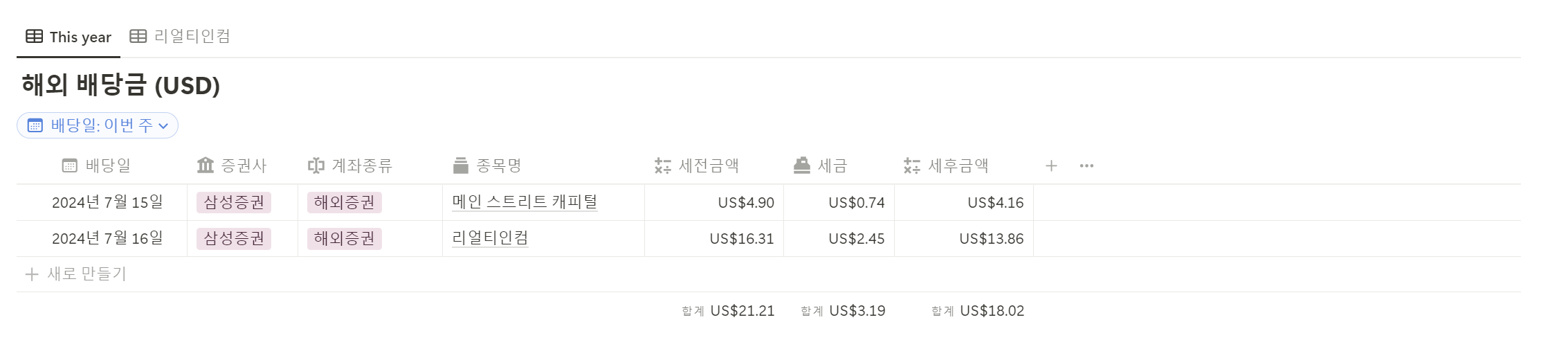 이번 주에는 해외 리츠 배당금을 받았습니다. 둘다 월배당이라 꼬박꼬박 잘 들어옵니다.