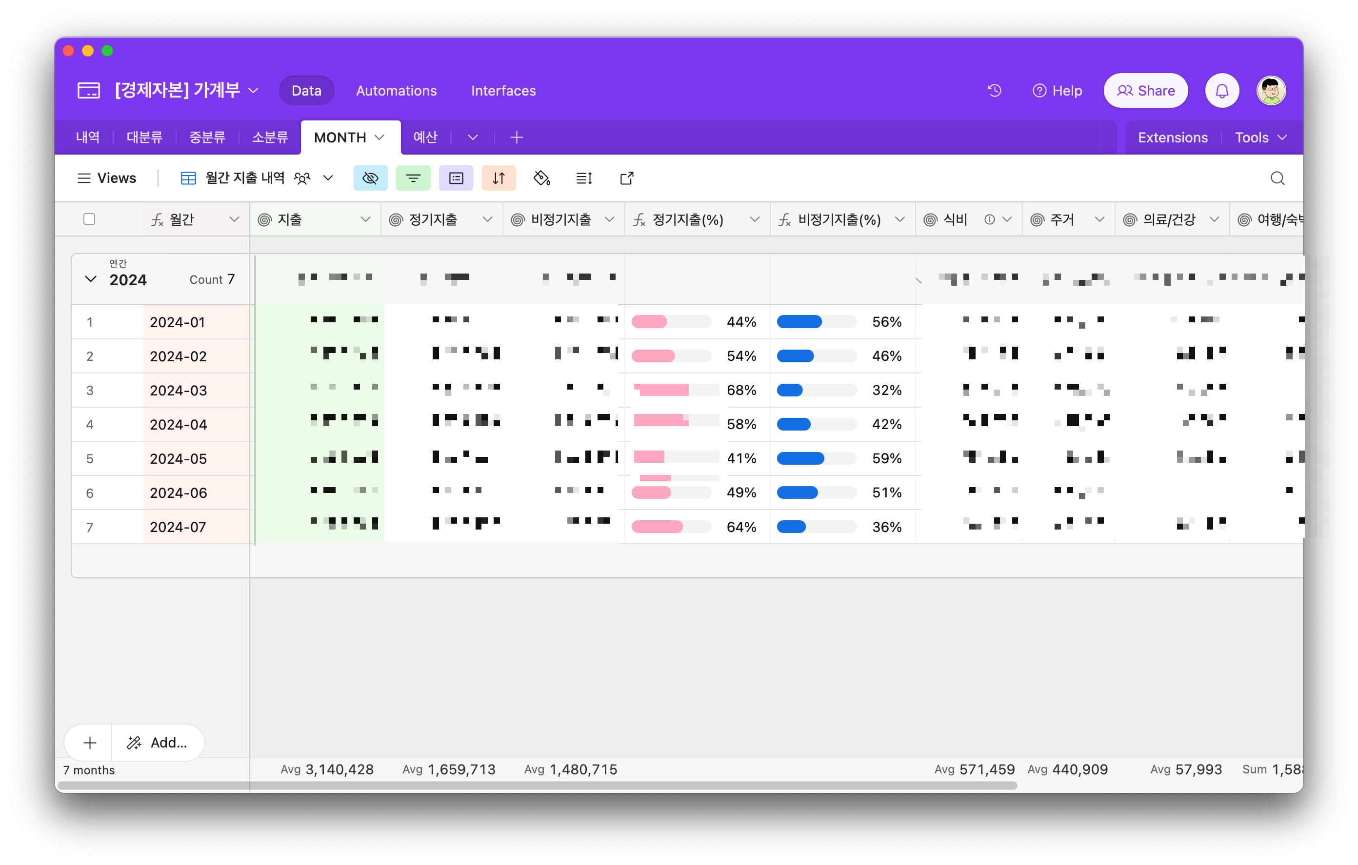 가계부를 오랜만에 옮겼습니다. 노션으로도 써보고, 엑셀로도 써보고 여러가지 방법을 많이 써봤는데 요즘 에어테이블이 여러 관점으로 보기 좋아서 한 번 자료를 옮겨봤는데 너무 좋습니다!