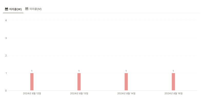 From Today가 하루를 마무리하는 루틴이라면, Calm Story는 매일 아침 기분을 적는 모닝 페이지 같은 루틴으로 새롭게 하나 만들었습니다. 아침에 미라클모닝을 꾸준히 하고 있는데, 주로 책 읽는데 시간을 많이 쏟고 있는데 일어나자마자 생각을 남기면 좋겠다는 생각이 들었거든요. 그래서 이번 주부터 남겨보고 있습니다 :)