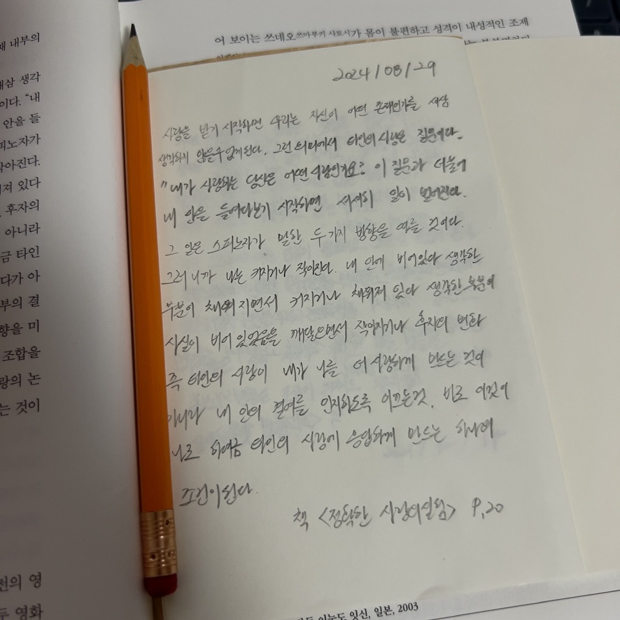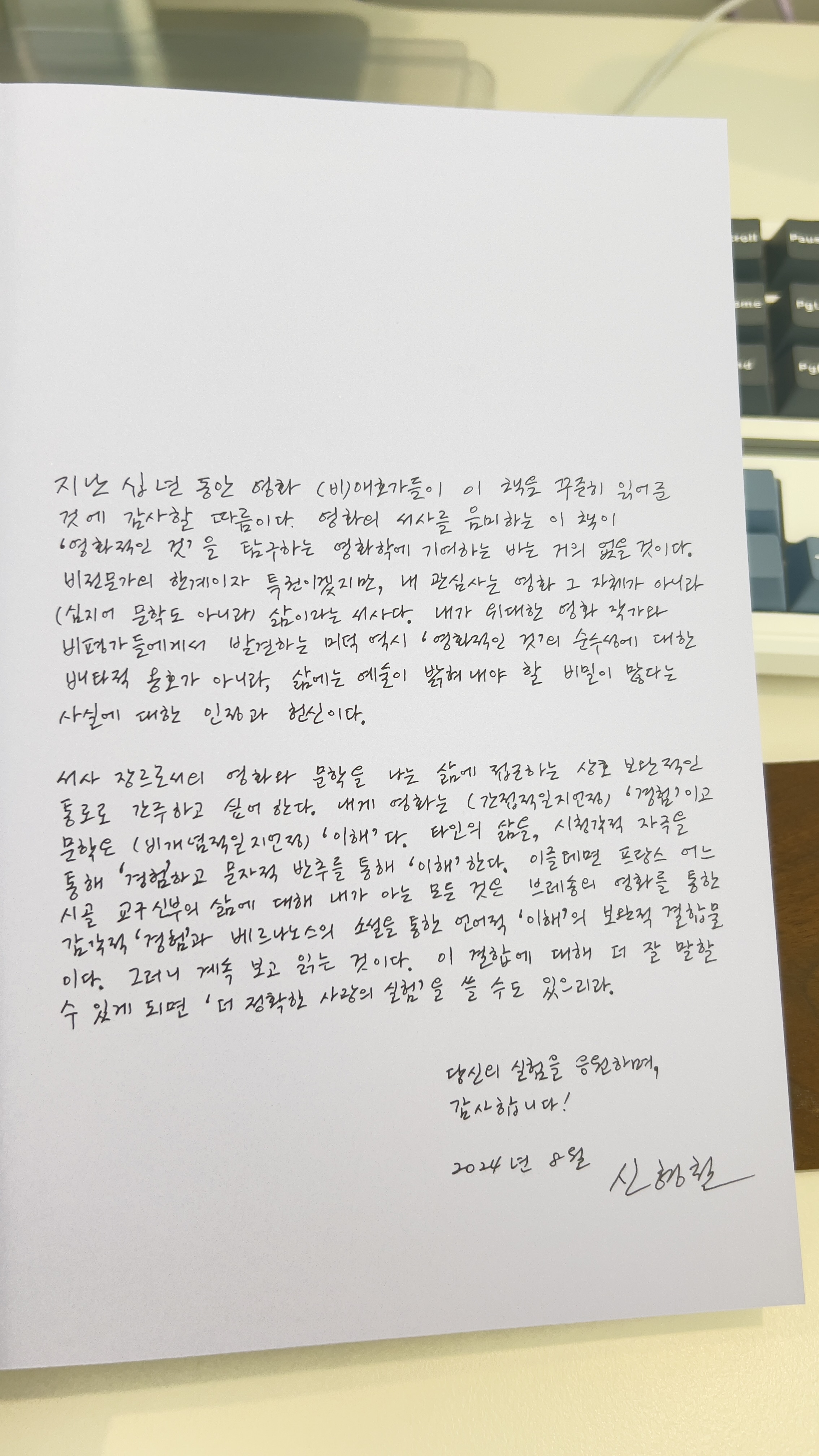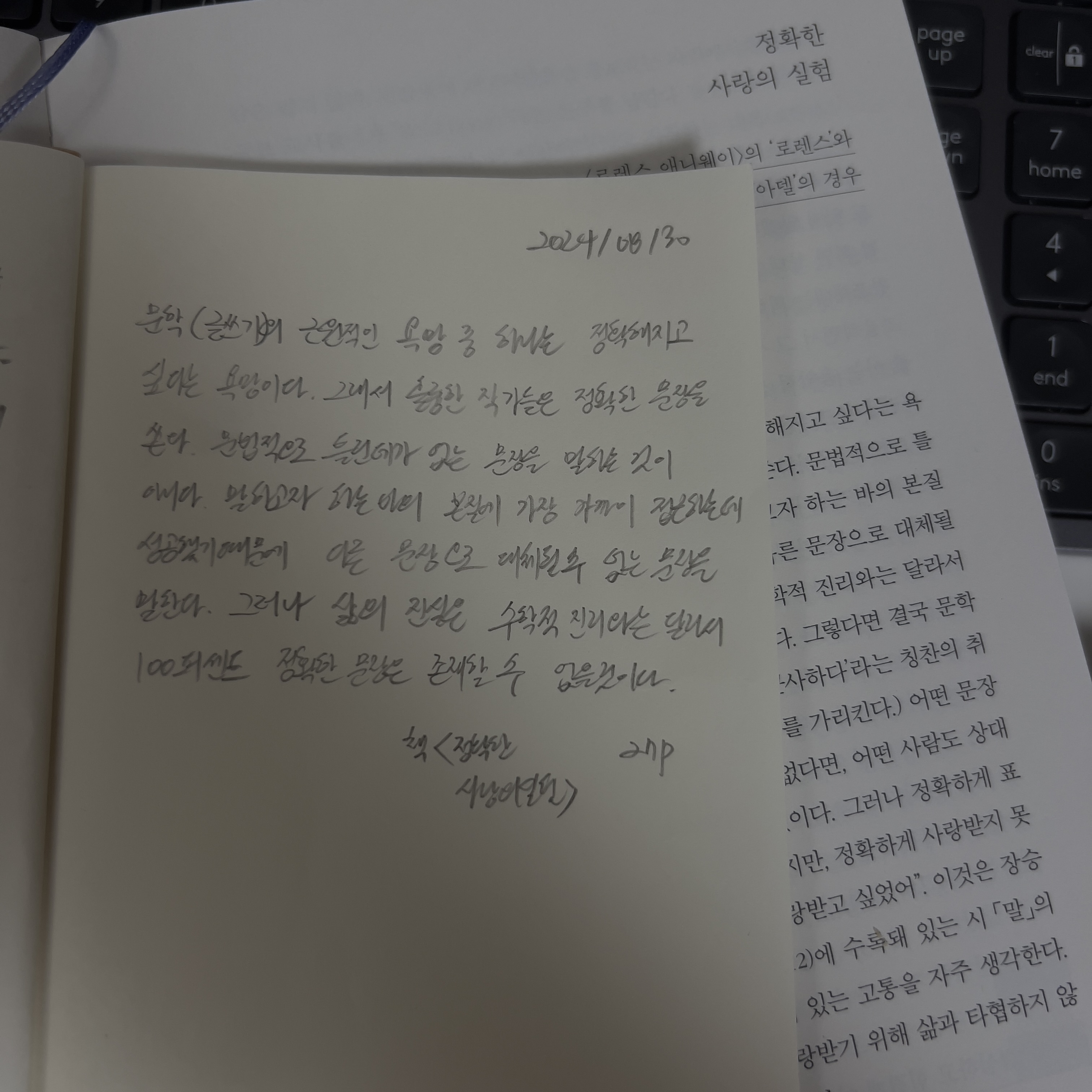 신형철 교수가 책을 내면 조건반사적으로 삽니다. 이번에 신간은 아니고, 기존에 나왔던 책 <정확한 사랑의 실험>이 10주년 기념 특별판으로 출간되어서 팬심에 다시 하나 샀습니다. 표지도 예쁘고, 10주년 기념 신형철 교수님의 코멘트도 있고. 책도 다시 읽으니 훔치고 싶은 문장이 너무 많네요. 이 책은 천천히 문장을 음미하면서 필사하면서 읽으려고요 :)