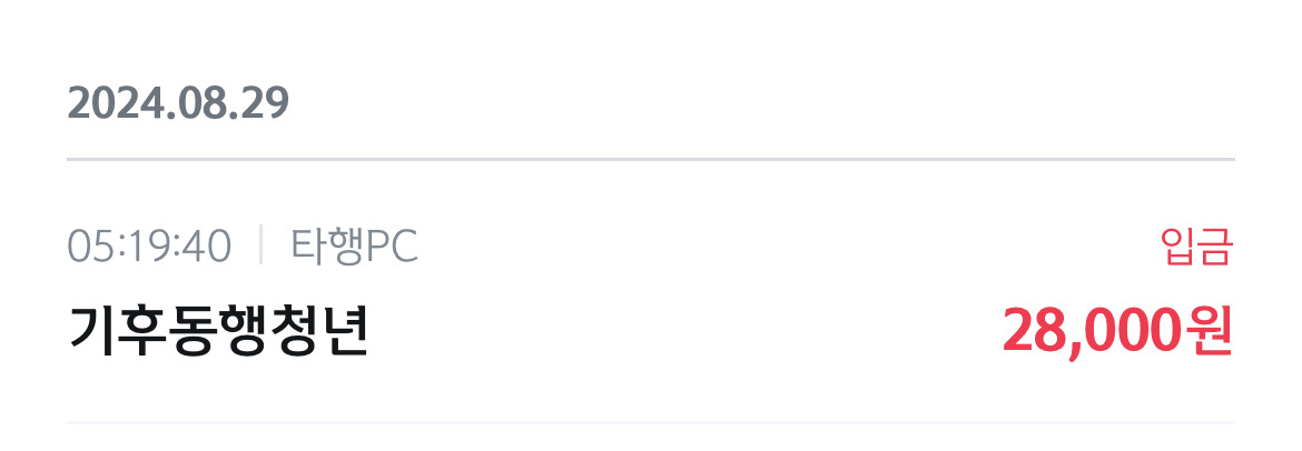 3월부터 7월까지 약 네 달 동안 기후동행카드를 62,000원 충전하고 사용했는데, 이번에 청년 환급을 받았습니다. 1달에 7천원씩 네 달해서 총 28,000원을 받았네요. 바로 파킹통장에 넣어두었습니다. 은근히 이런 돈이 꿀!
