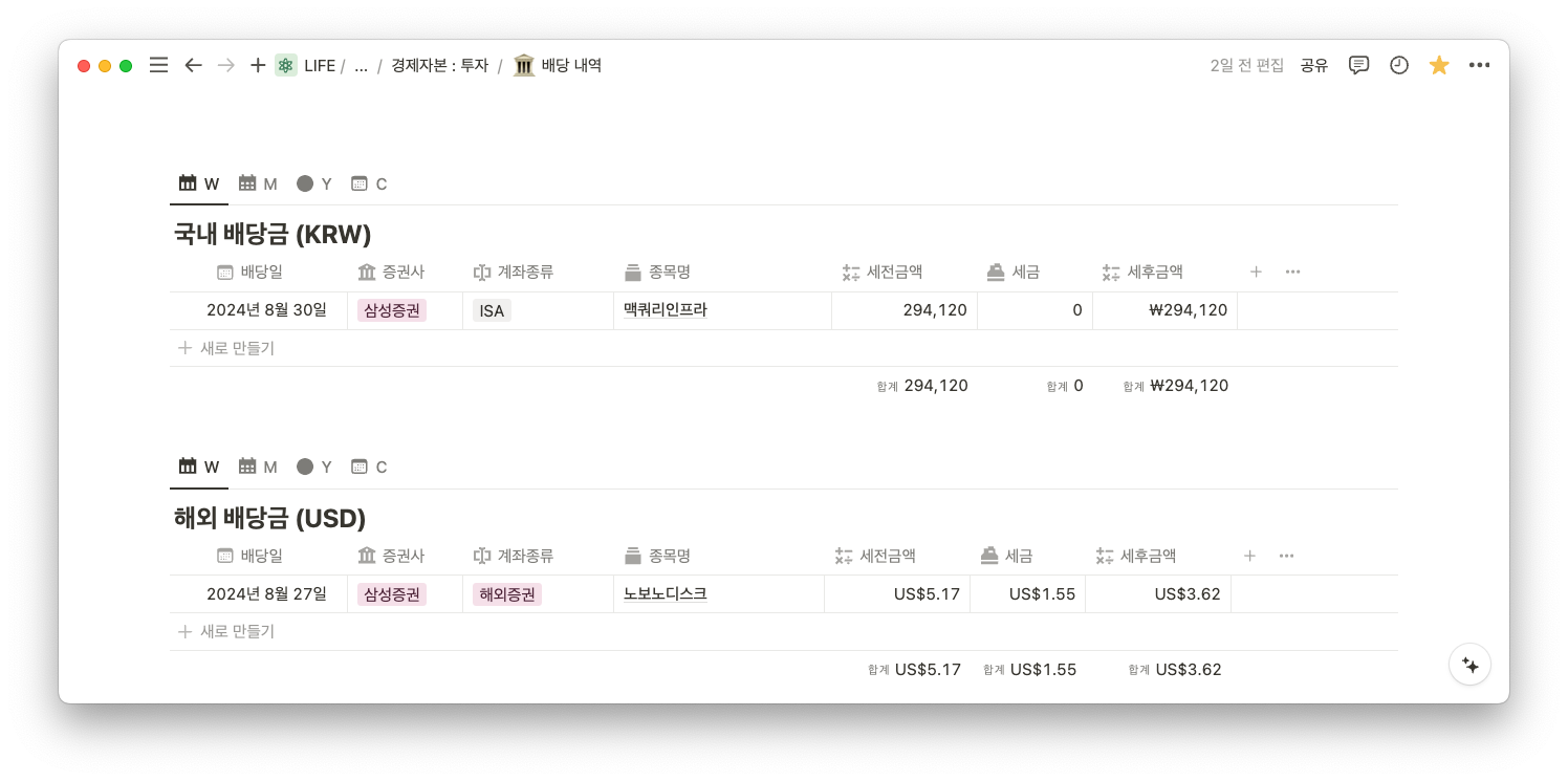 1. 배당금 입금 (맥쿼리 인프라, 노보노디스크)