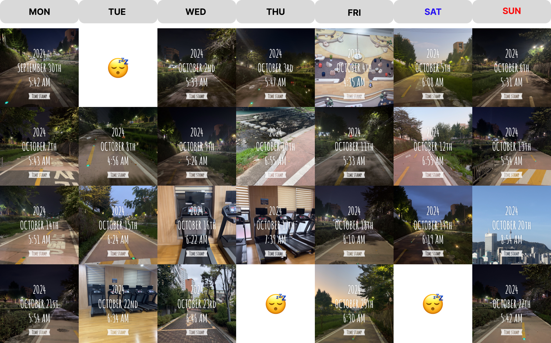 지난 2달 동안 열심히 운동해서 그런지, 이번 주는 좀 힘에 부치는 한 주였다. 그래서 목요일, 토요일은 일찍 안 일어나고 푹 잠. 덕분에 체력이 어느정도 회복되서 다시 열심히할 힘이 생겼다 :-)
