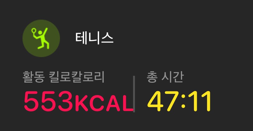 2. 테니스 열심히 치는 중. (칼로리 소모가 왜이리 높지)