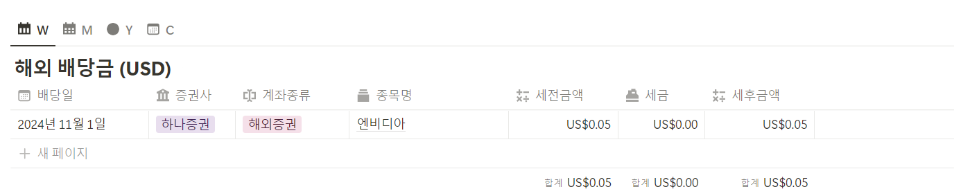하나증권에서 엔비디아 소수점 천원 주식을 줬는데, 그 주식이 배당 나왔다. 귀여운 0.05달러. ㅎㅎ