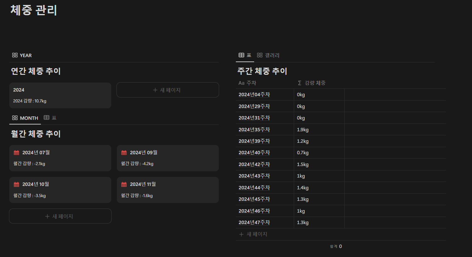 연간으로는 10.7kg 정도 빠졌고, 월간으로는 이번달 최고-최저 빼면 1.6kg 정도 감량. 잘 빠진 7~10월에 비하면 아쉬운 수치지만 꾸준히 가자.