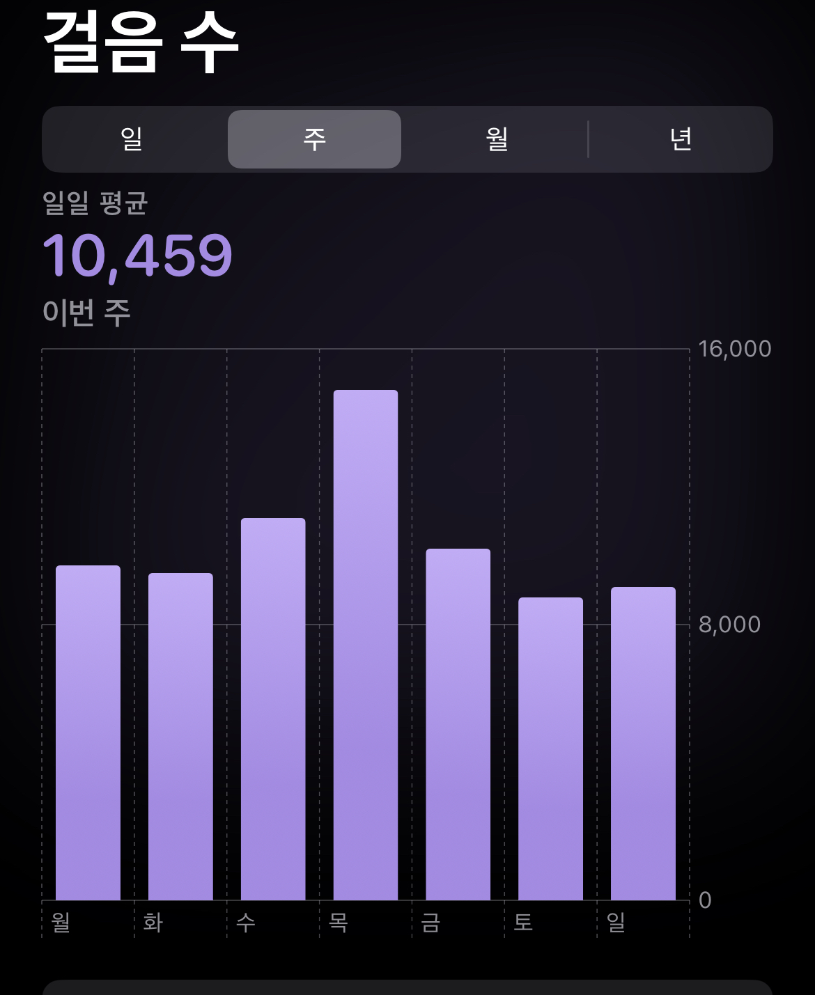 이번 주는 가까스로 만 보. 걸음 수 좀 다시 늘리자.