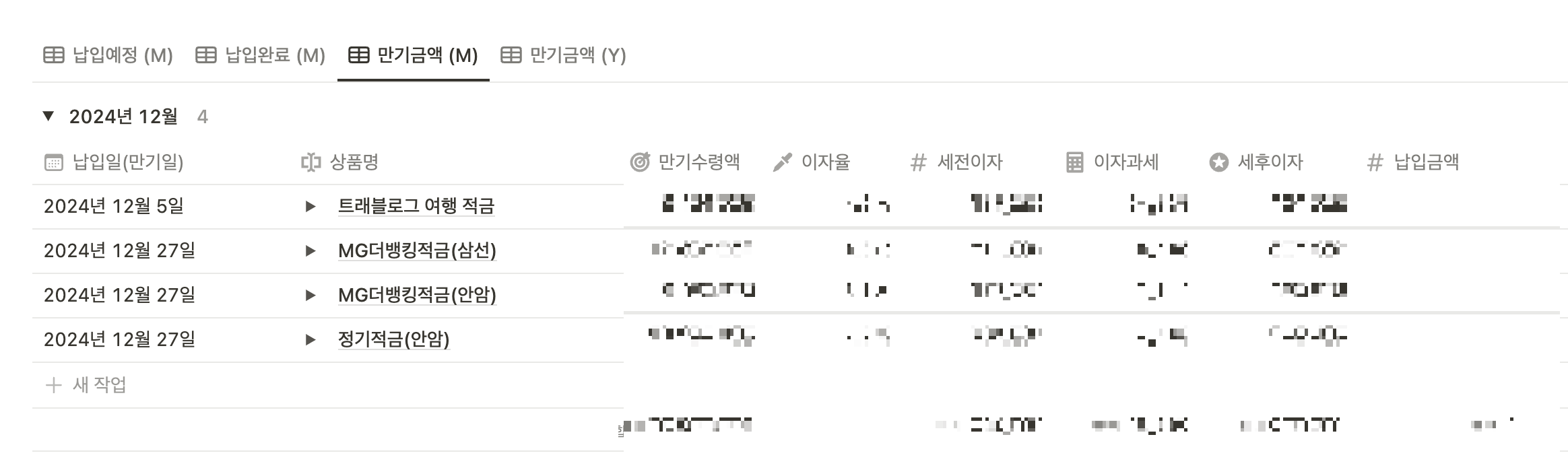 몇 년 전에 노션으로 가계부 쓰다가 부하가 너무 심하고, 기능이 제한적이라 포기했는데 다시 노션으로 한 번 테스트중. 이번에는 부하를 좀 줄이기 위해서 연도별로 DB를 끊어서 갈 생각. 일단 2024년 1년만 세팅했는데 나쁘지 않아서, 지난 자료도 틈틈이 시간 될 때마다 가져와야겠다.