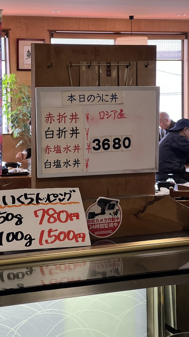 우니동은 비싸서 잘 못 먹는데, 요이치 식당에서 3680엔에 팔고 있더라고요. 삿포로 가면 최소 7000엔인데. 안먹을 수 없죠.
