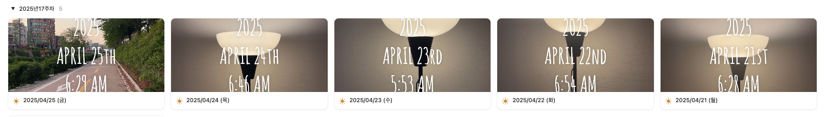 이번 주는 5일 모두 성공 :) 금요일에는 드디어 아침 산책을 시작했습니다.