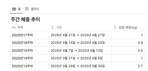 운동 + 식단관리를 통해 체중은 꾸준히 빠지고 있답니다.