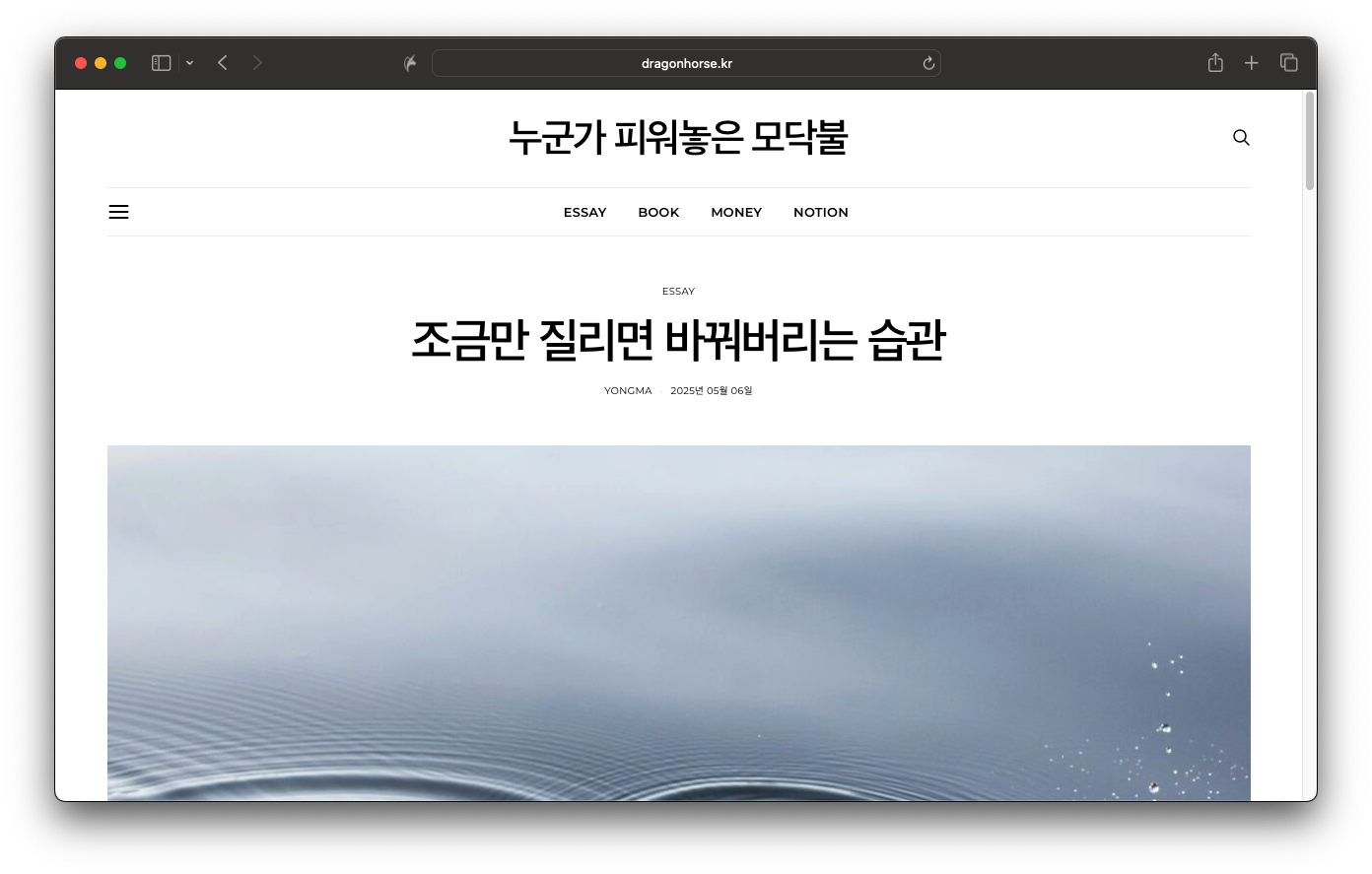 전에도 워드프레스를 몇 번 개설하다가 다시 접고 그랬는데, 아무래도 일반 블로그에 비해 비용도 들고 관리가 귀찮은 편이라 그랬었습니다. 아마 앞으로도 그럴지 모르겠지만 그럼에도 불구하고 다시 개설해서 제가 쓰는 글을 아카이빙해봐야겠습니다. 사람들에게 널리 알리는 목적보다는 기록 용도라 조용히 운영해보려고 합니다 :)