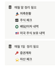 매월 1회 실전투자모임을 진행하고 있습니다. 이번 주(5/4)에도 일요일 9시에 모여 서로 투자 근황을 공유하는 자리를 가졌답니다. 노션에 재무 관련 여러 자료들을 월말, 월초에 정리하고 있는데, 실전 투자모임에서는 이 중에서 증권계좌 페이지를 공유하면서 수익률을 체크하고 있습니다.