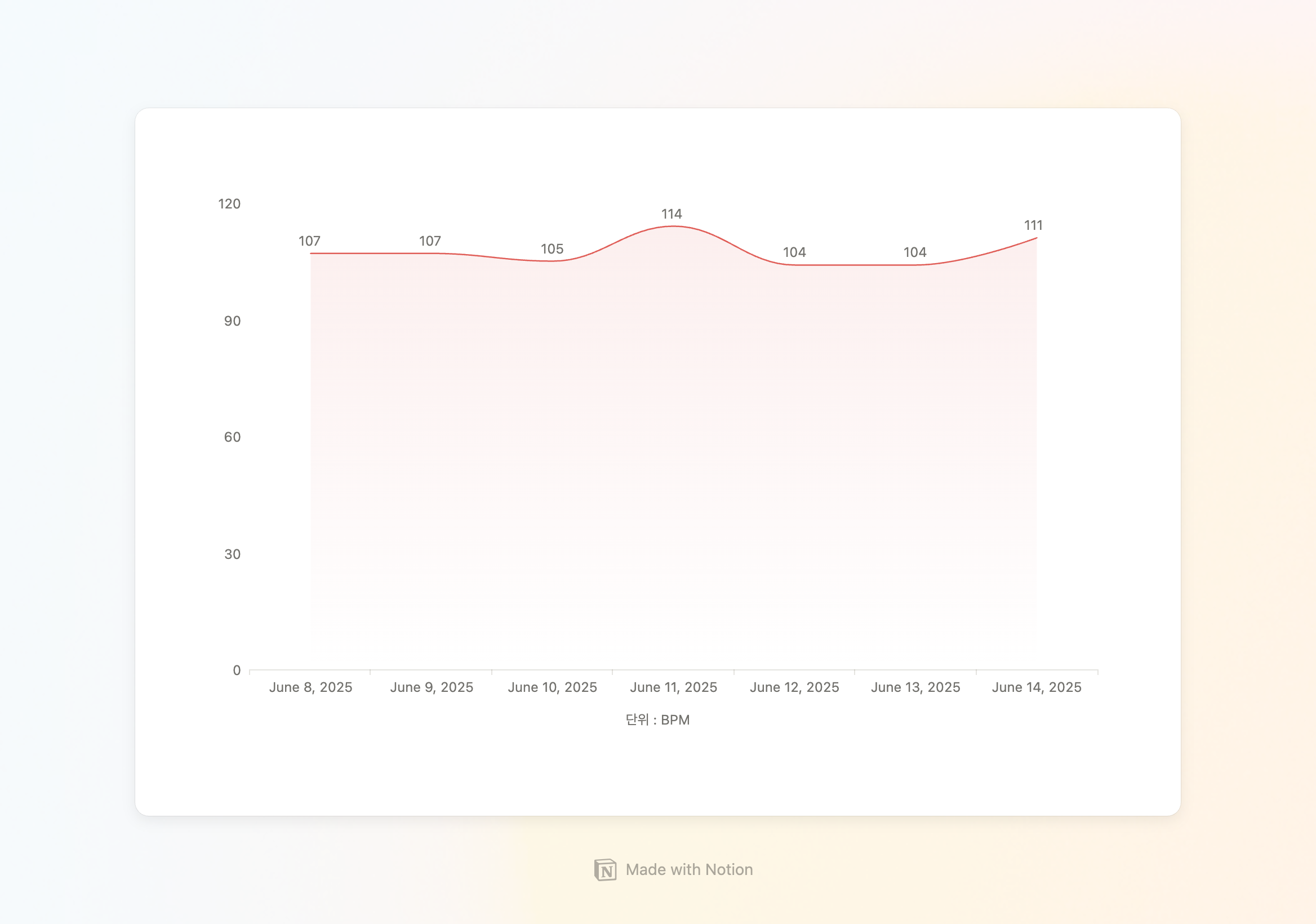 지난 일요일에 심박수가 제일 높았고, 그 이후에는 140 넘은 날이 없다. 걷기 평균 심박수는 거의 비슷하다.