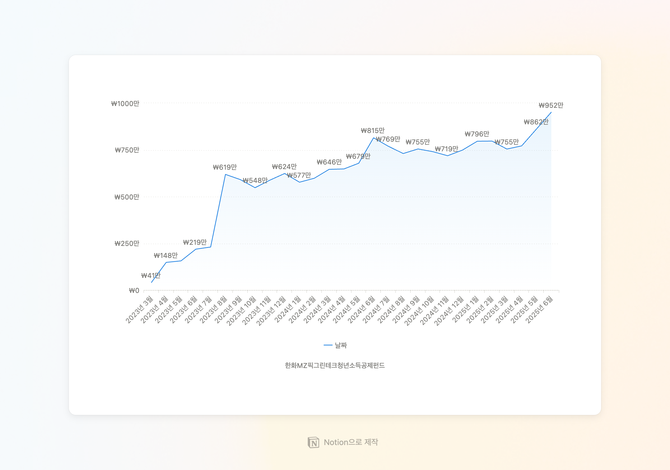 이번 주에 아주 오랜만에(?) 배당 소식은 없었고, 투자 중인 청년소장펀드 수익률만 좀 정리해봤다. 2023년에 윤석열 정부 때 내놓은 상품이었는데 출시할 때도, 지금도 여전히 인기 없는 상품이다. 그런데 최근에 국장이 좋아지면서 이 펀드의 수익률이 미친듯이 개선되는 중.