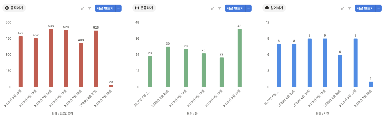 이번 주는 활동량 부족. 날씨도 습하고 더운 날도 많아서 운동 패스.