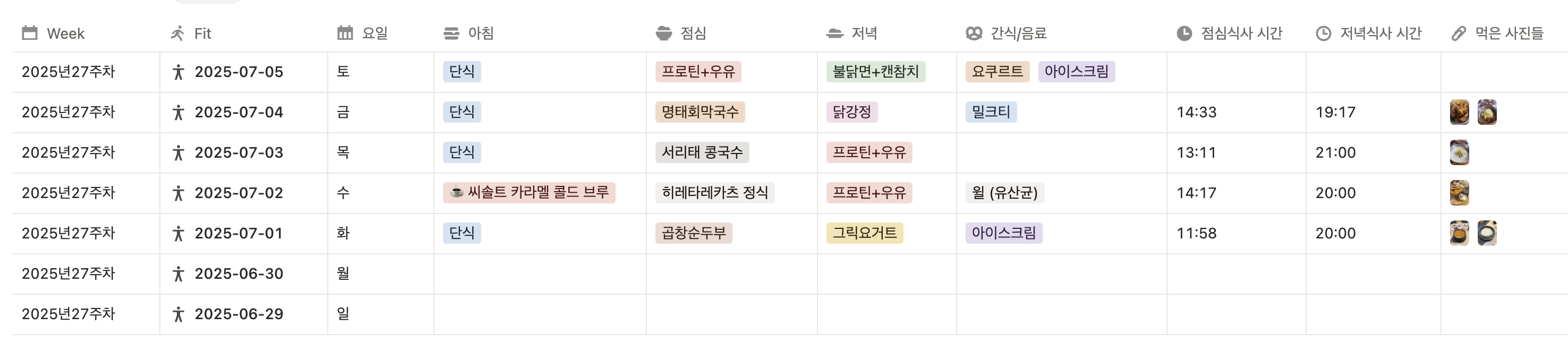 이번 주부터 식단도 기록해보는 중. 원래 아침을 먹던 사람이었는데 요즘 간헐적 단식을 위해 일부러 굶고 있다. 점심이나 저녁 중에 하루도 보통 프로틴+우유로 먹으니까 식비가 정말 확 줄어든 게 체감이 된다.