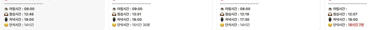 요즘 간헐적 단식에도 관심이 많아져서 식단일지에 열심히 단식시간도 기록 중. 저녁을 일찍 먹고, 다음날 아침을 안 먹으면 단식하기 참 쉬운데, 그 두 가지 지키기가 쉽지 않음.