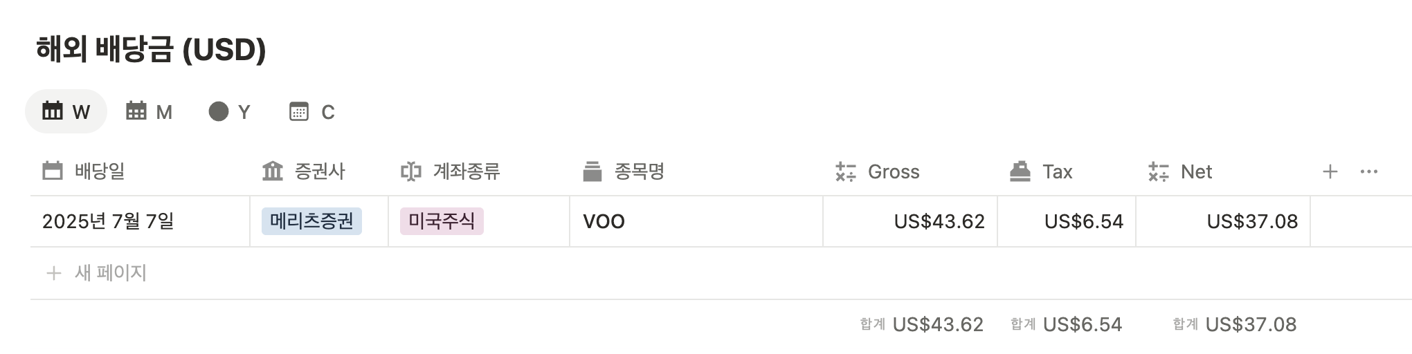 3. 주간 배당내역