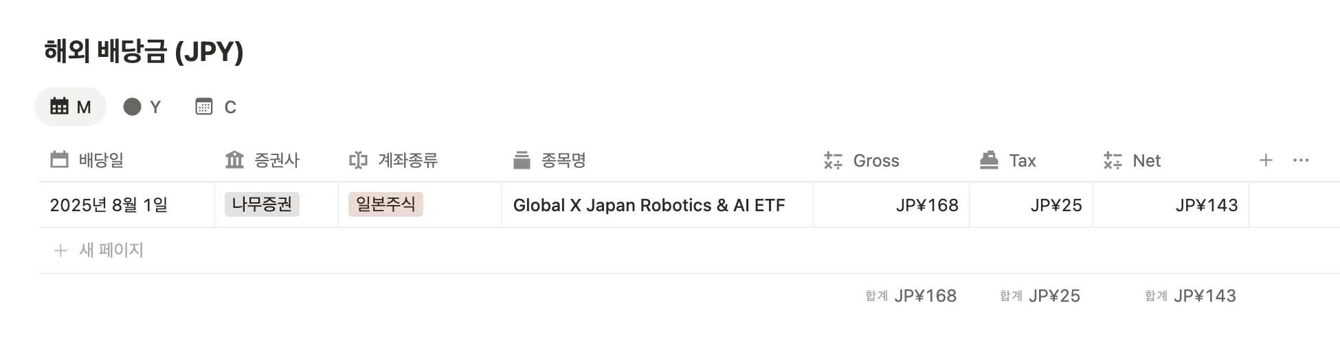 이번 주는 일본 ETF에서 귀여운 배당이 들어왔다.