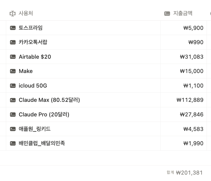 요즘 클로드 쓸 일이 많아 이번 주에 Claude Pro에서 Max로 구독을 늘렸다. 덕분에 디지털 월세가 확 늘었다.