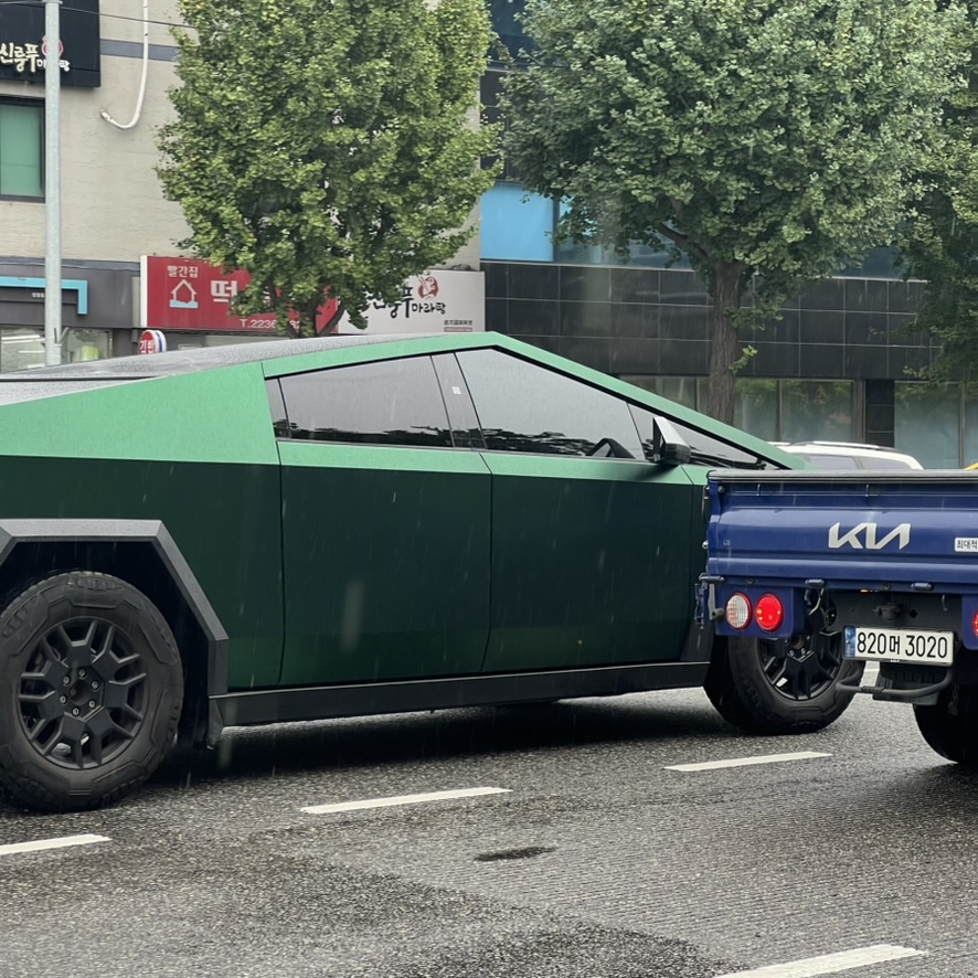 점심에 밥먹으러가다가 초록색 사이버트럭 발견. 국내에 몇 대 안 되는걸로 아는데 직접 보니 이질감이 아주 가득. ㅎㅎ 크고 무식하게 생긴게 아주 내 스타일 아님. 뭔가 아메리칸 스타일 좋아하는 사람들이 좋아하게 생겼다.