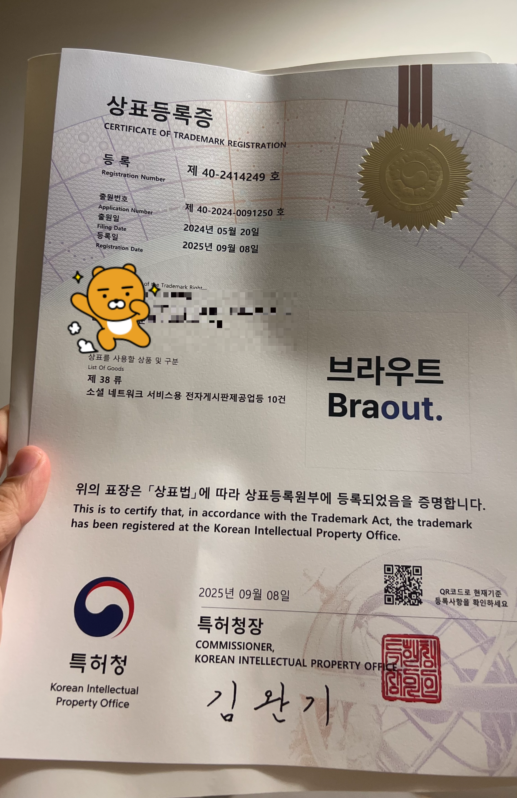1. 브라우트 상표등록증 도착