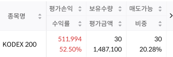 퇴직연금에 코스피200을 투자 중인데 어느덧 52퍼 돌파. 요즘 국장 분위기가 너무 좋음. 코스피 지수 수익률이 50퍼가 넘다니.