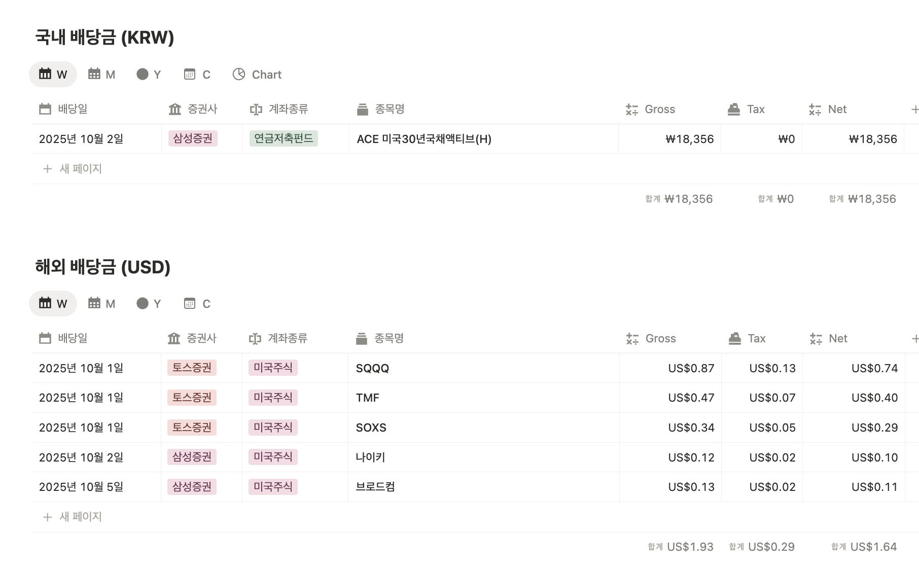 미국 장기채와 소수점 미국주식에서 배당이 들어왔다. 소소한 금액.