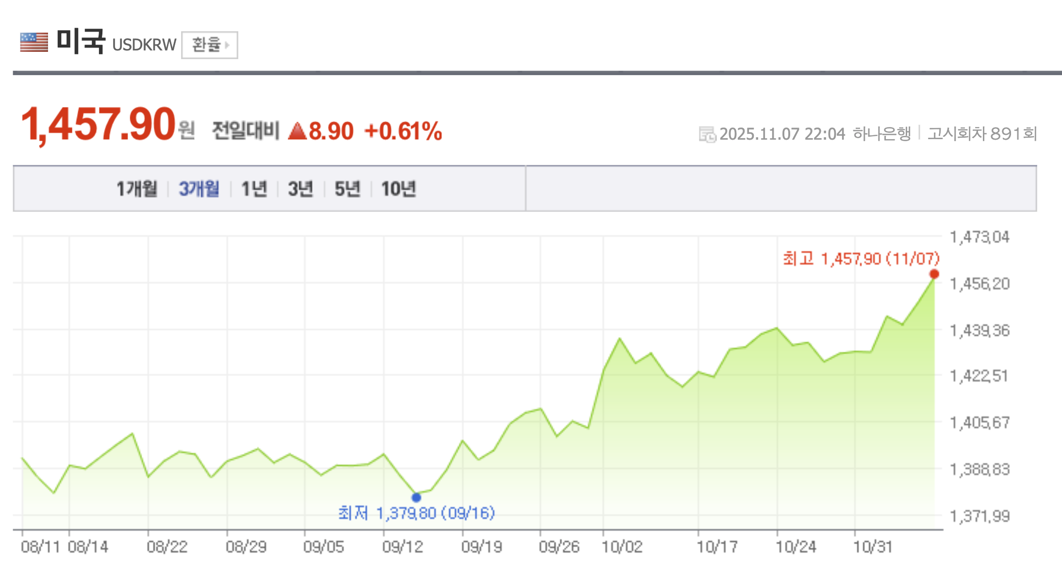 3. 원달러 환율 1460 돌파.