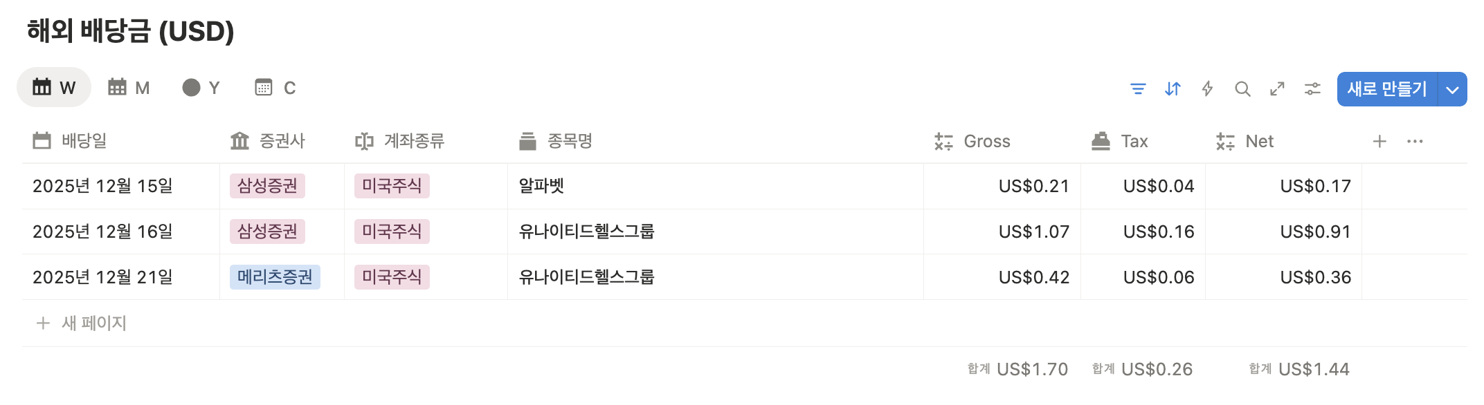 1. 주간 배당금